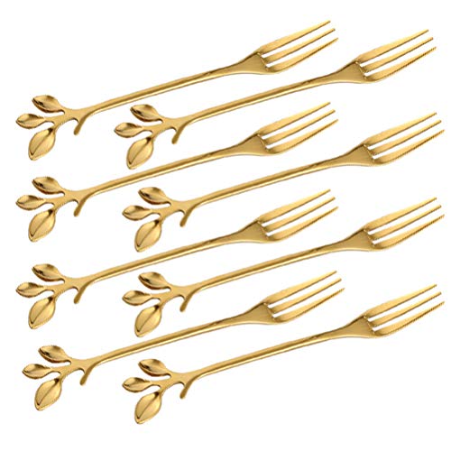 Customer reviews Turbokey Appetizer Cake Fruit Forks Set of 8,Gold Leaf Cocktail Picks 4.7 Inches Tasting Dessert Forks Kitchen Accessory Wedding Party (8 Forks-Gold)